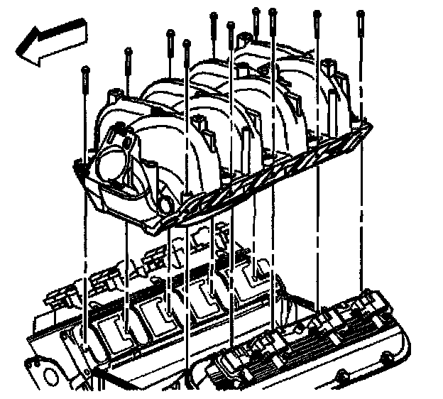 - Tighten the intake manifold bolts in sequence to 10 Nm (88 lb in) on the third pass.