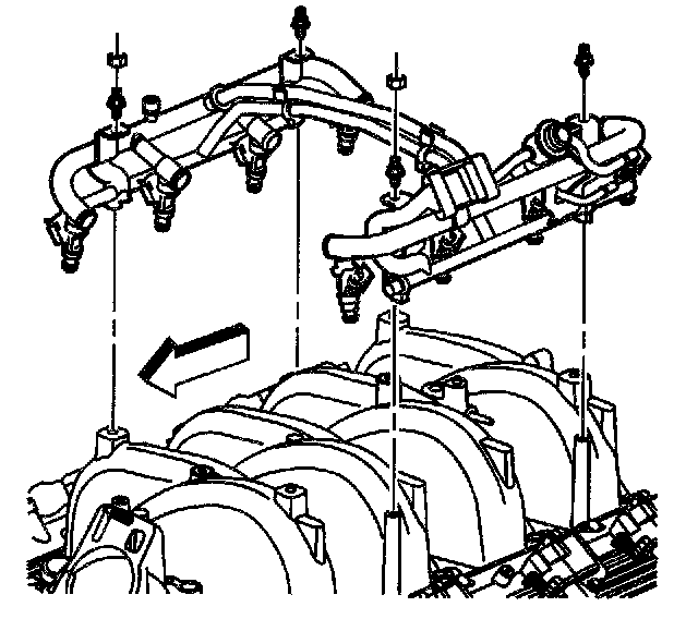 12. Install the fuel injection fuel rail studs and/or bolts.