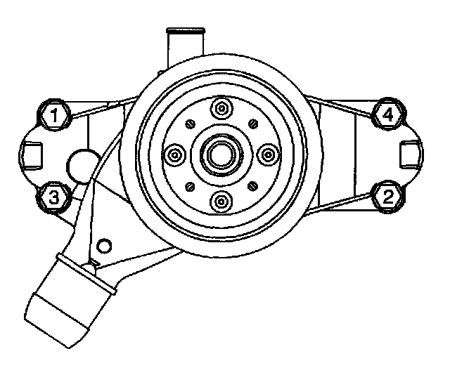- Tighten the water pump bolts to 50 Nm (37 lb ft) for the final pass.
