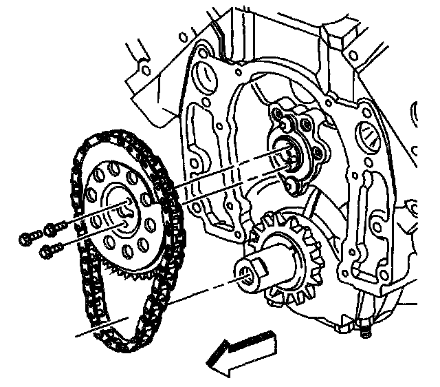 Important: The sprocket teeth must mesh with the timing chain in order to prevent damage to the camshaft retainer.