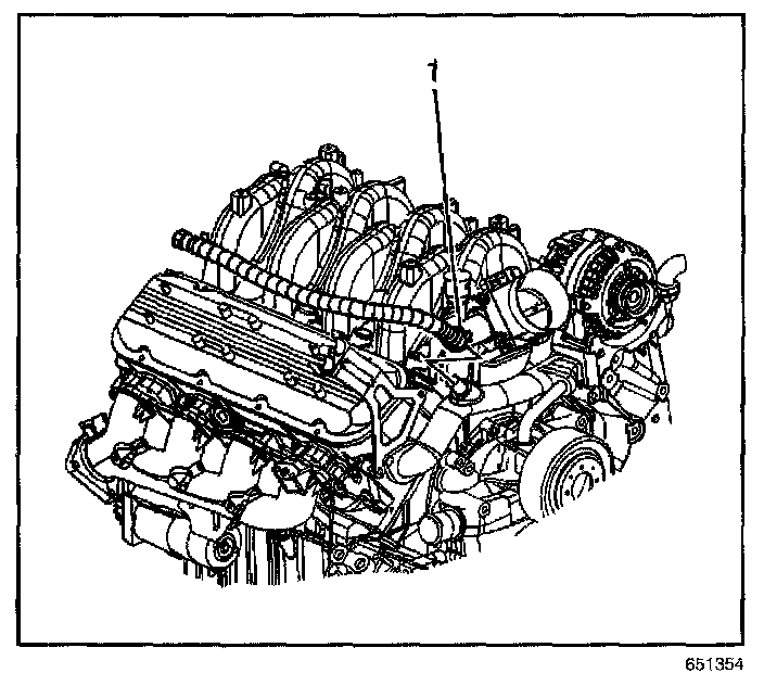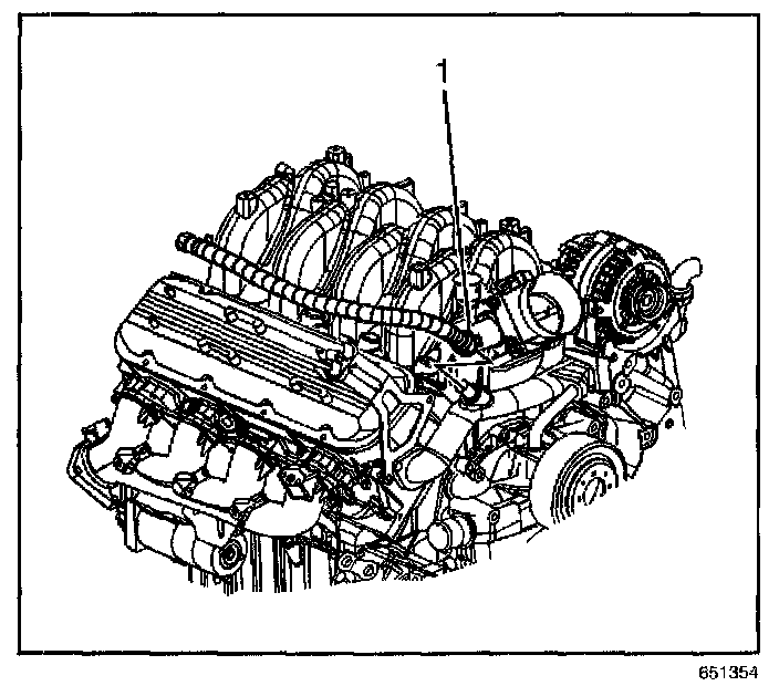2. Install the inlet heater hose (1) to the coolant outlet fitting.
