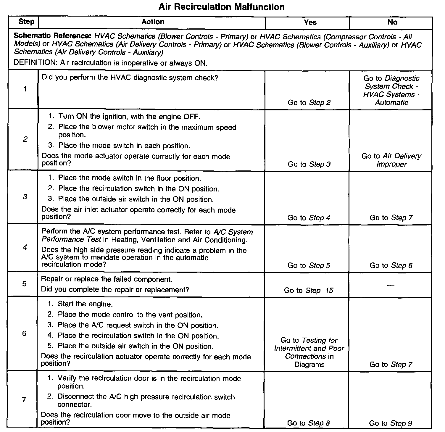 3. This step tests for a inoperative recirculation actuator in one mode position(s) or in the wrong mode position(s).