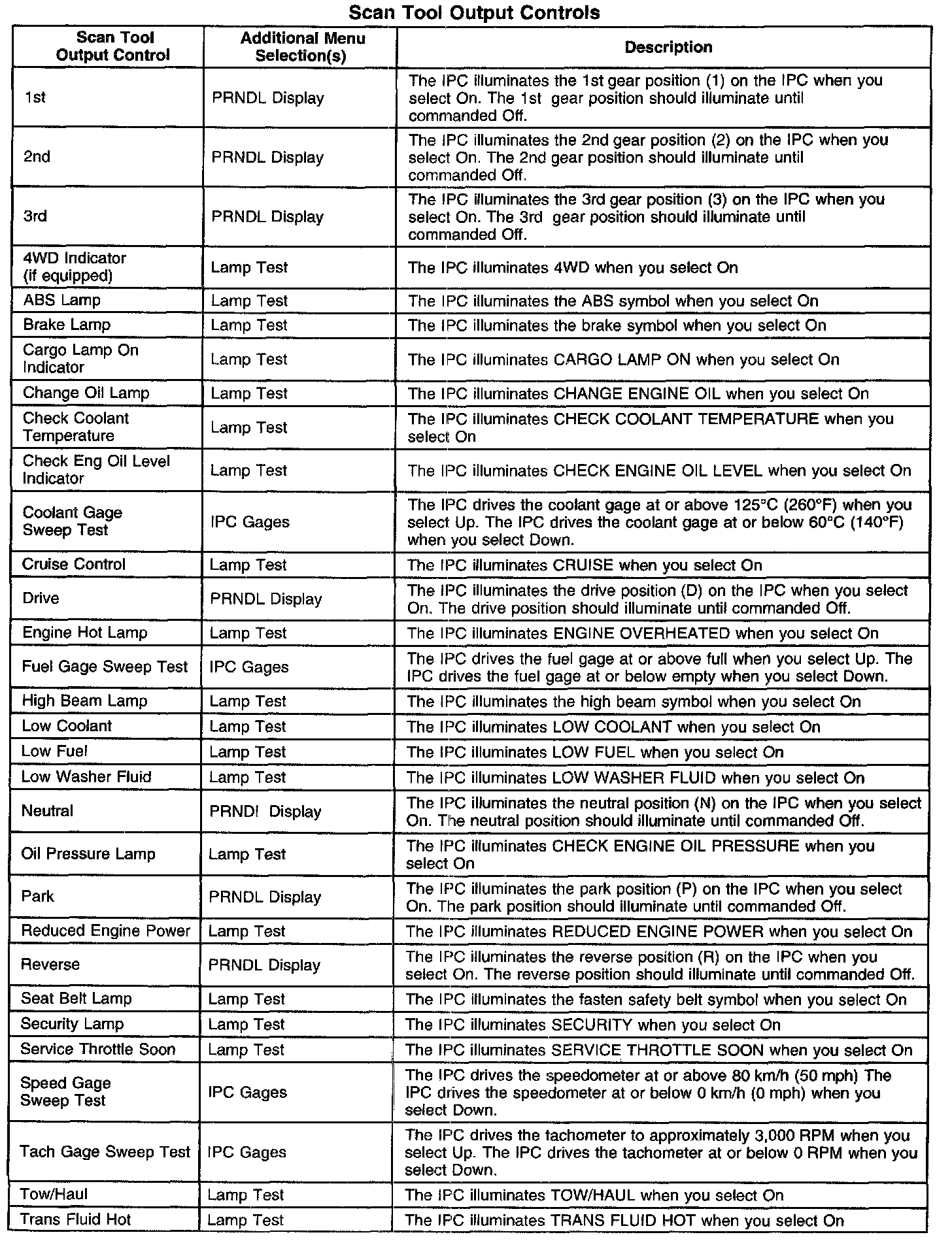 Scan Tool Output Controls