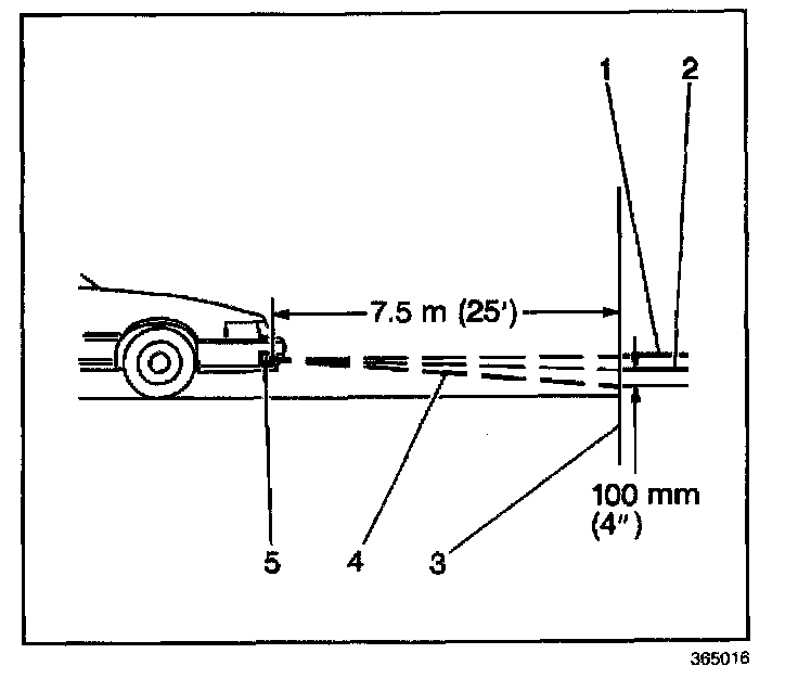 6. Adjust the fog lamp so that the top edge of the fog lamp beam pattern is 100 mm (4 in) below the horizontal centerline.