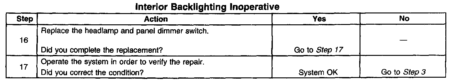 Interior Backlighting Inoperative