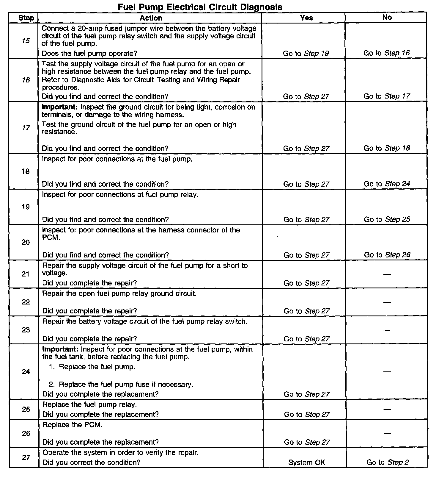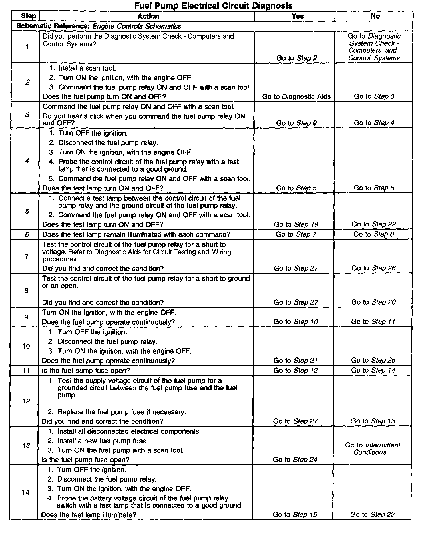 Fuel Pump Electrical Circuit Diagnosis
