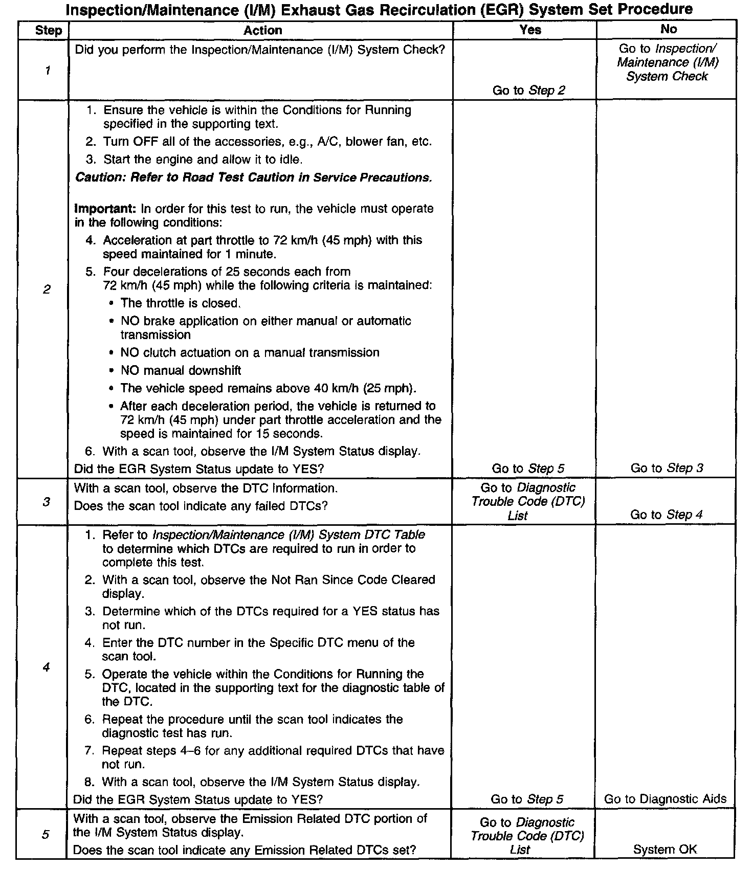 Inspection/Maintenance (I/M) EGR System Set Procedure