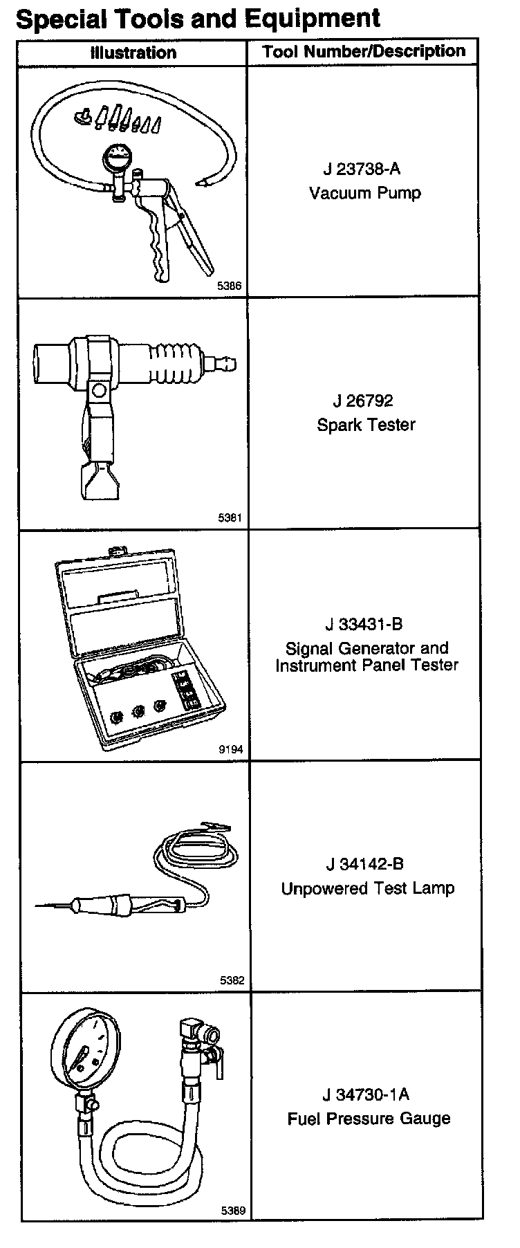 Special Tools And Equipment Part 1:
