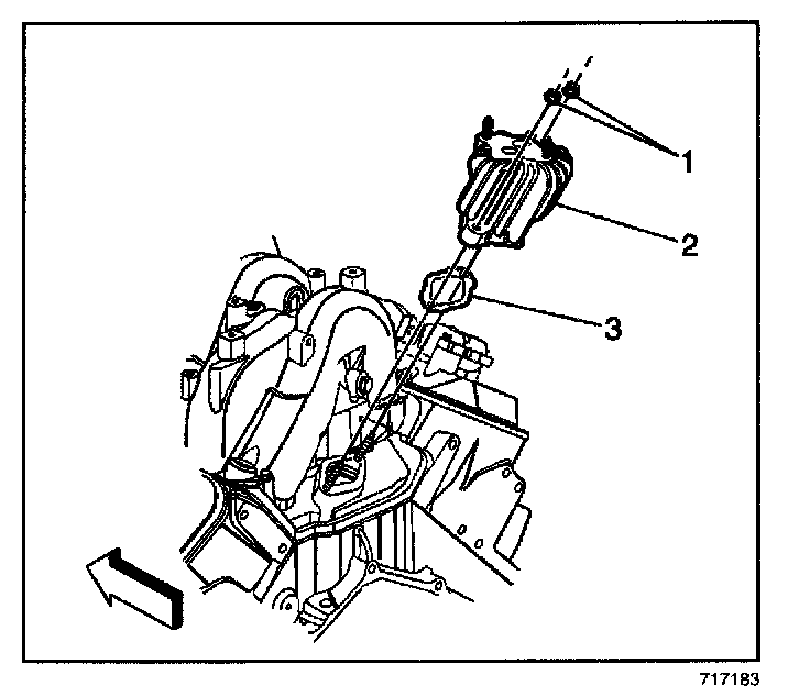 3. Remove the two EGR valve adapter bracket retaining nuts (1).