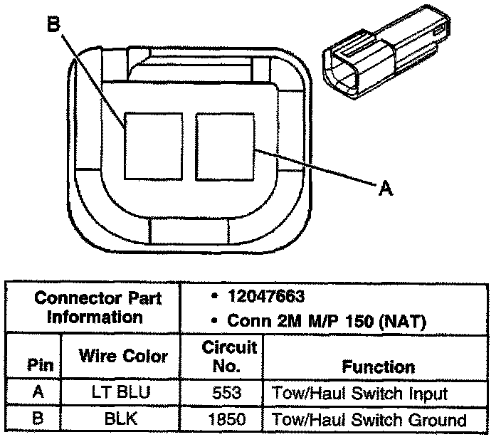 Tow/Haul Switch Connector, Column Wiring Harness Side