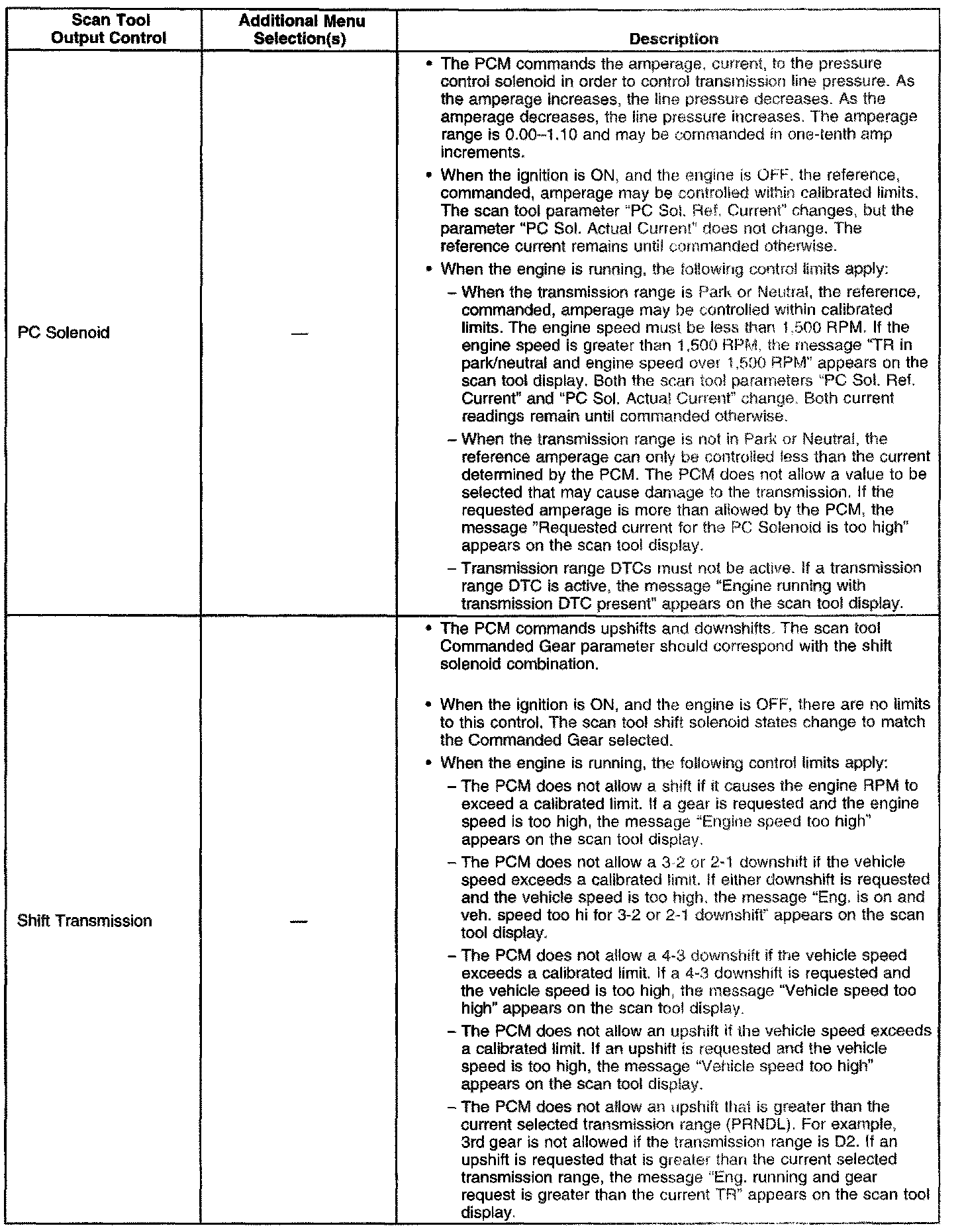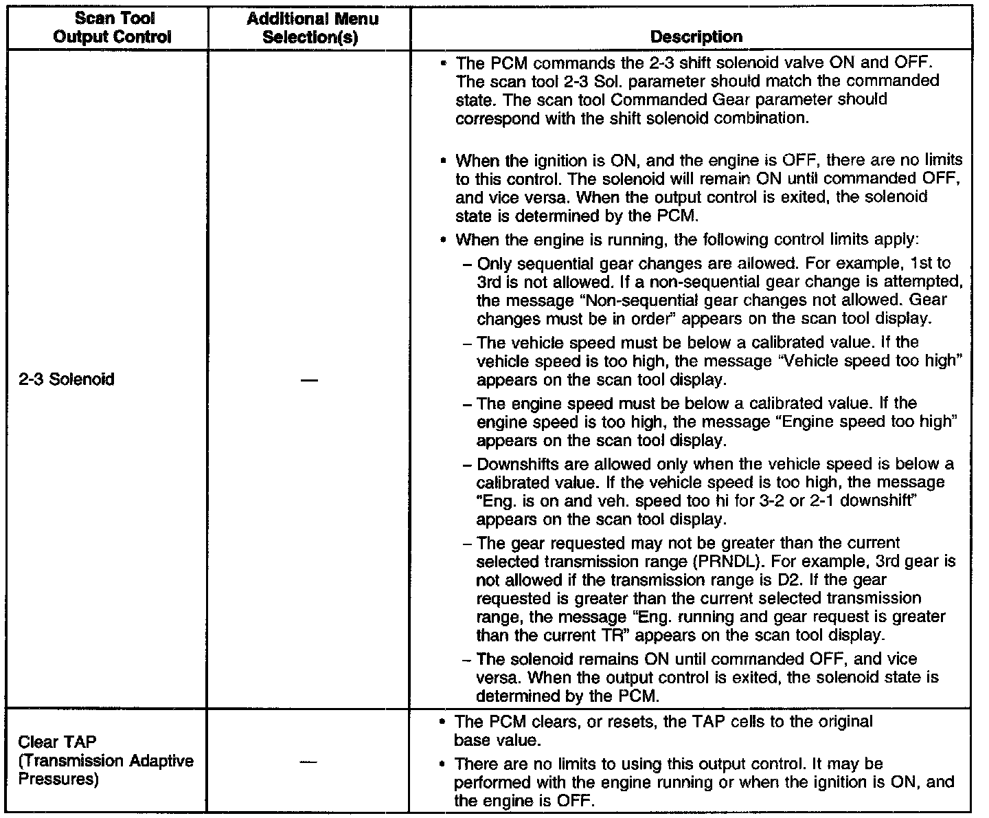 Scan Tool Output Controls