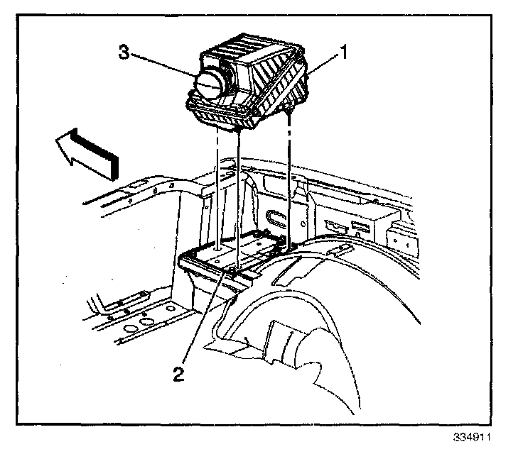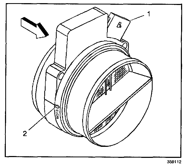 IMPORTANT: If the MAF/IAT sensor is installed backwards, the fuel system goes rich. An arrow (2) cast into the plastic portion of the sensor indicates proper air flow direction. The arrow must point toward the engine.