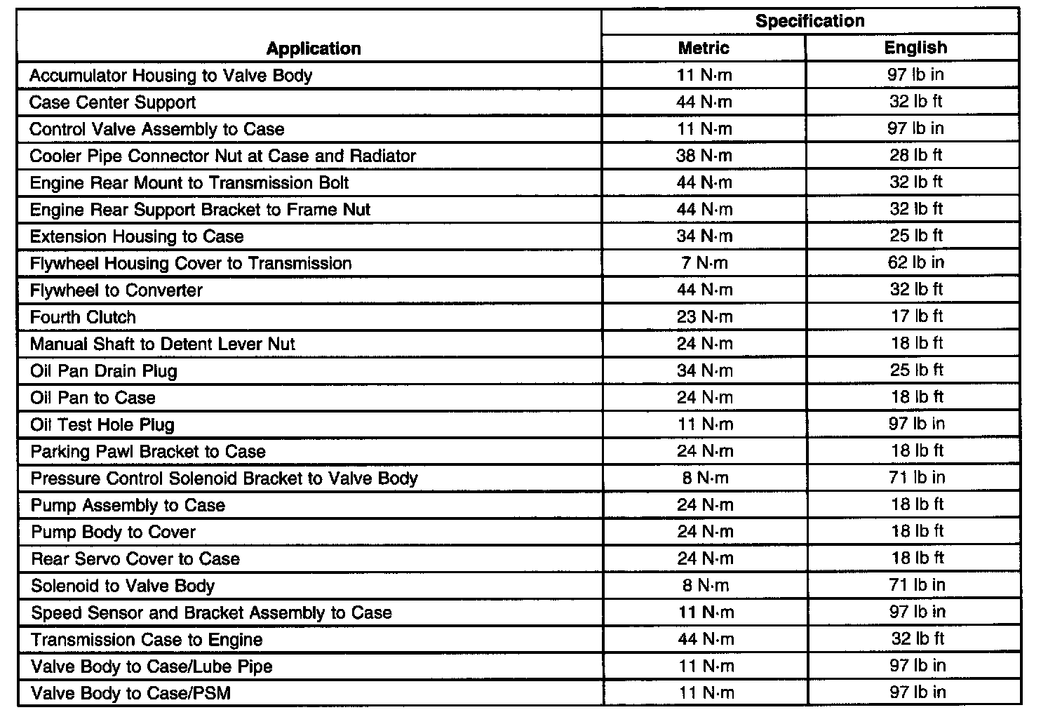 Fastener Tightening Specifications