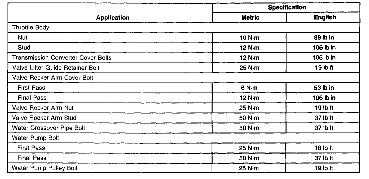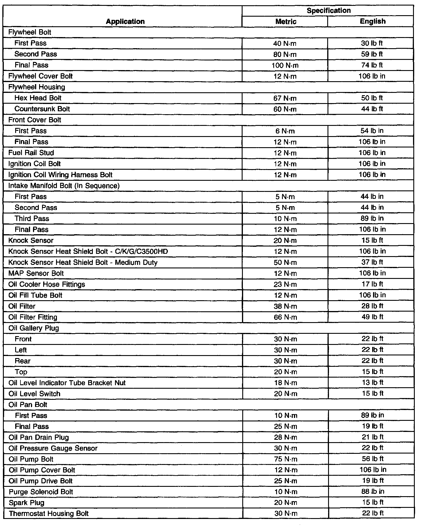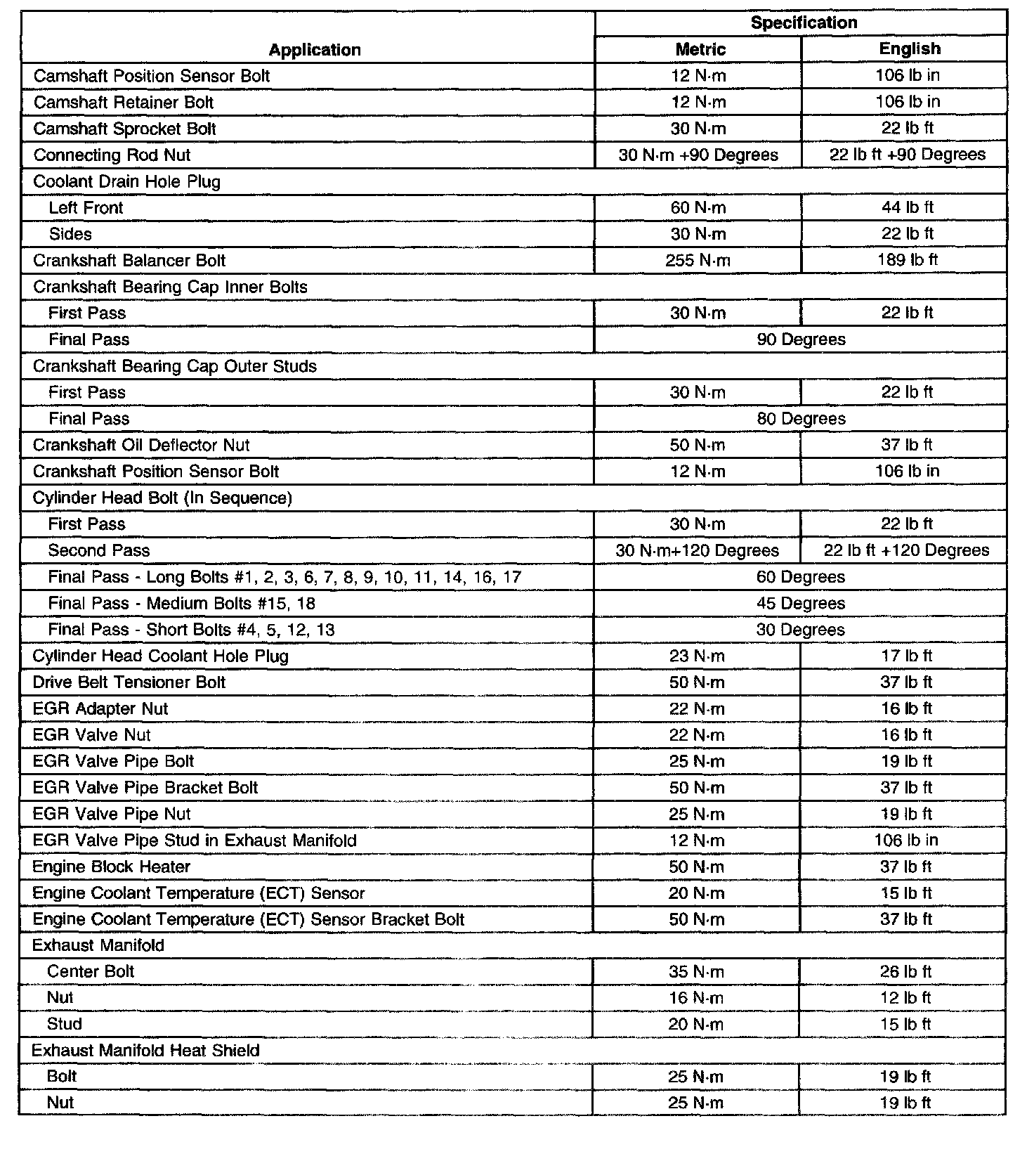 Fastener Tightening Specifications