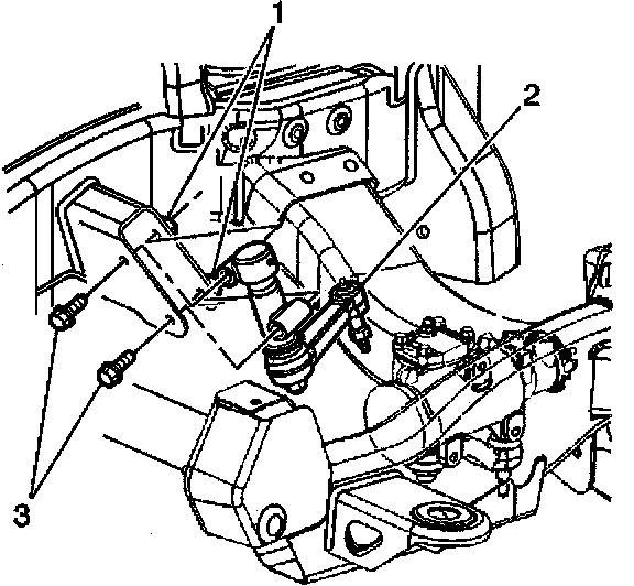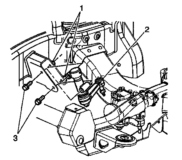 5. Remove the idler arm frame bolts (3) and the nuts (1).