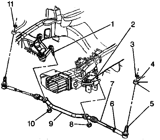 3. Install the relay rod (9) to the idler arm ball stud (1).