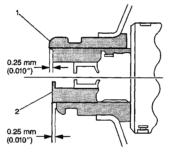 3. Ensure that the power steering pump pulley is flush against the power steering pump shaft, with an allowable variance of 0.25 mm (0.010 inch).
