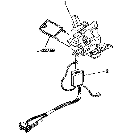 10. Remove the ignition switch (2) from the lock module (1) using the J 42759.