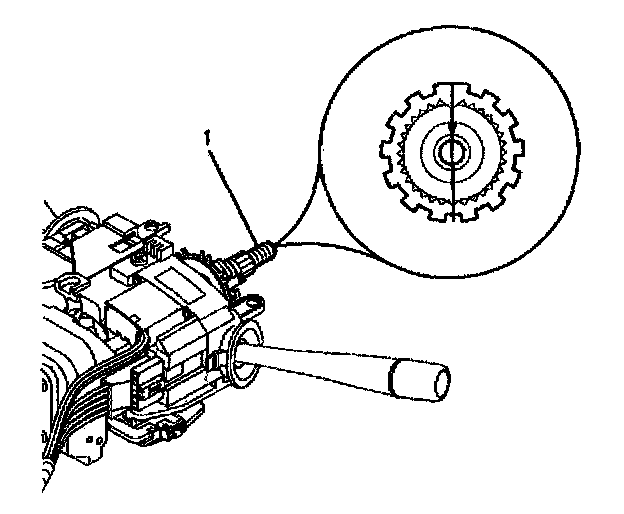 Inflatable Restraint Steering Wheel Module Coil - Assemble - Off Vehicle1. Align the block tooth on the steering column shaft assembly (1) to the 12 o'clock position.