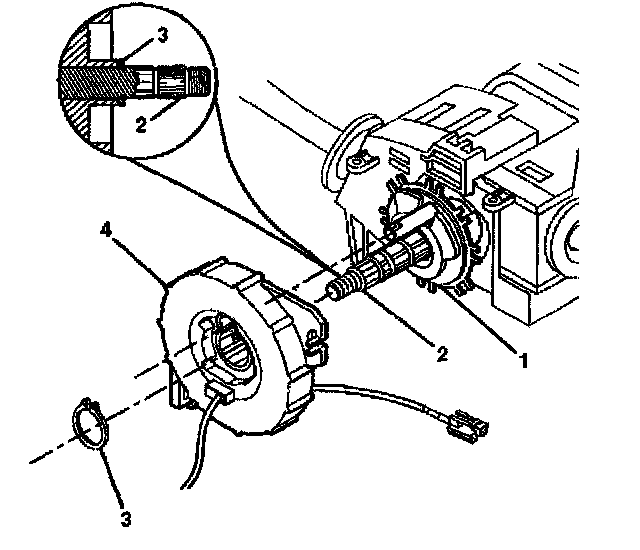 6. Slide the new inflatable restraint steering wheel module coil (4) onto the steering column shaft assembly (2).