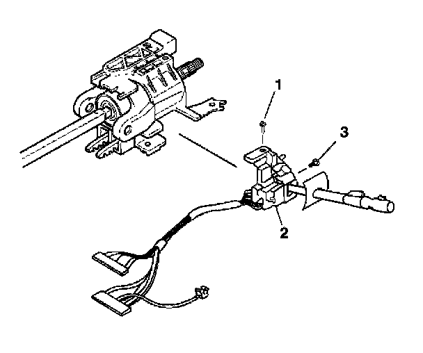 6. Remove the 2 pan head tapping screws (1) and (3) from the turn signal and multifunction switch assembly (2).