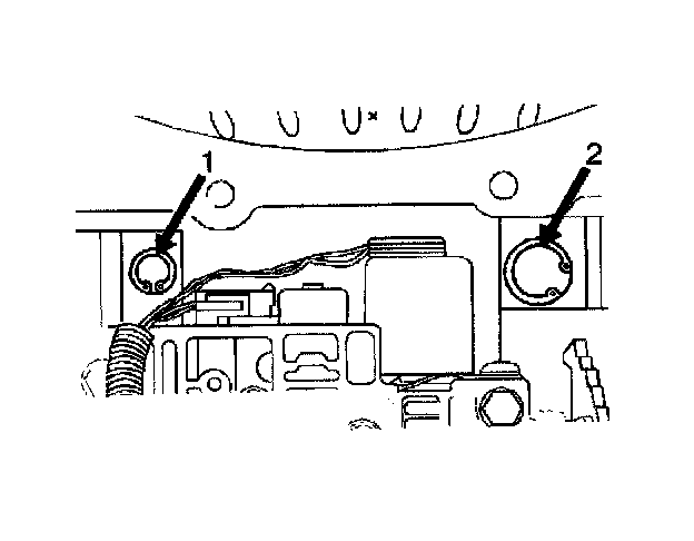 3. Remove the reverse boost valve bushing retainer ring (2).