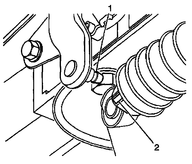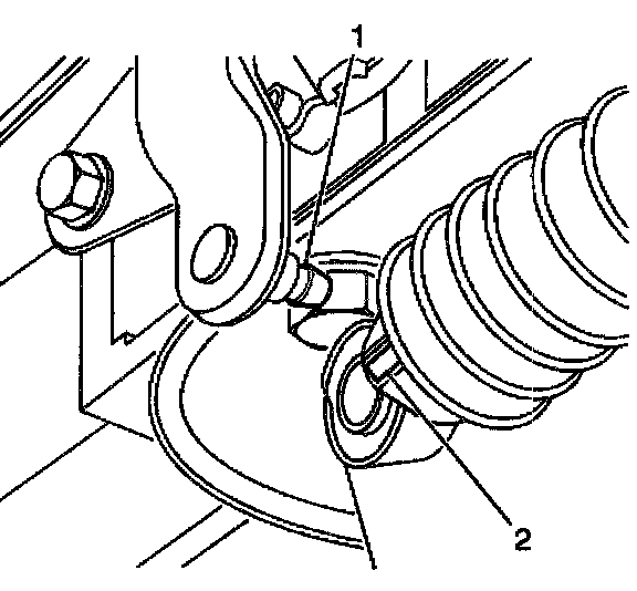 4. Remove the range selector cable end (2) from the transmission range selector lever ball stud (1).