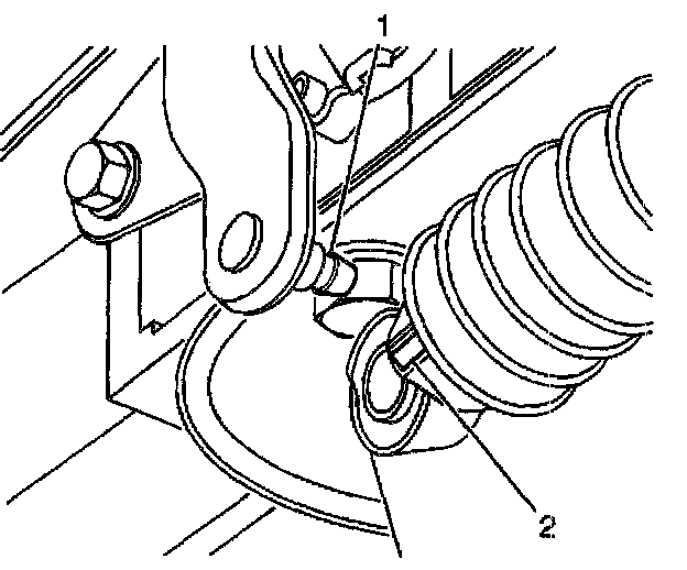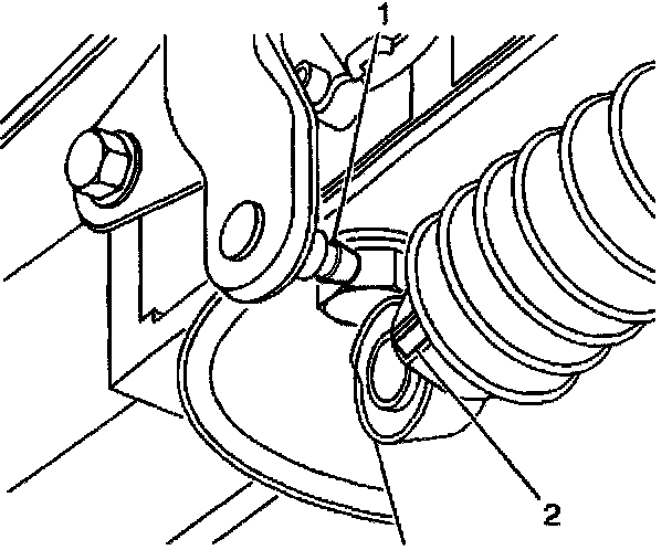4. Remove the range selector cable end (2) from the transmission range selector lever ball stud (1).