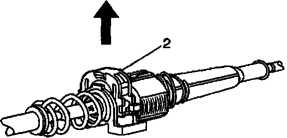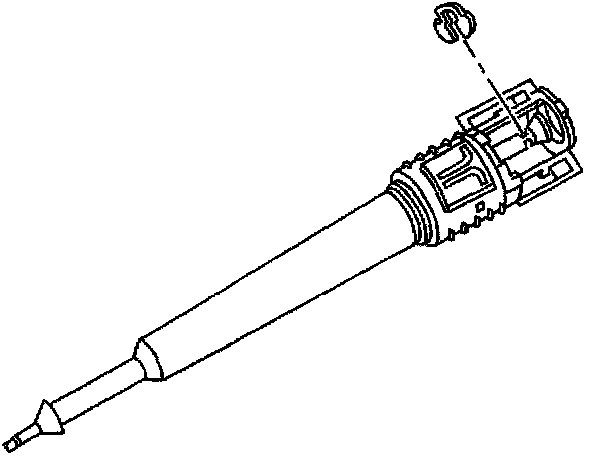 8. Ensure that the steering column shift lever remained in the park position for the best possible access to the E-clip. Remove the E-clip by pulling radially on the center section of the E-clip.