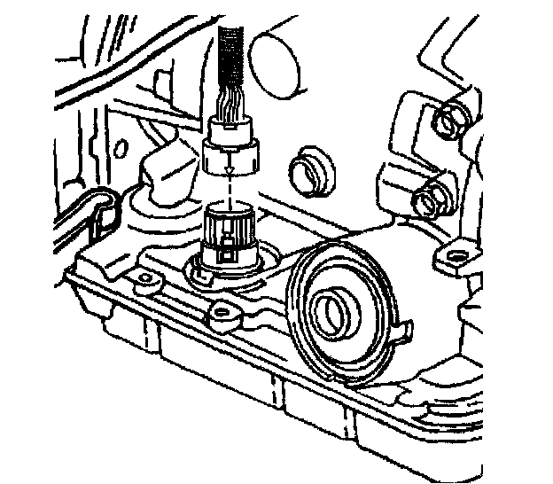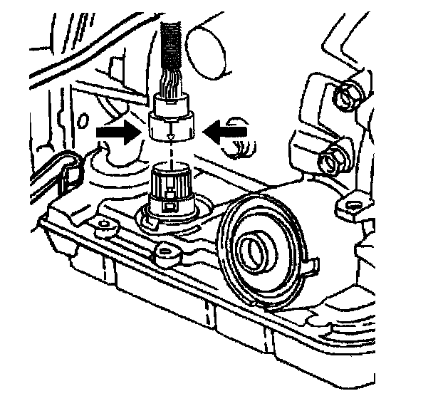 11. Using J28458, release the pass-through electrical connector from the transmission case.