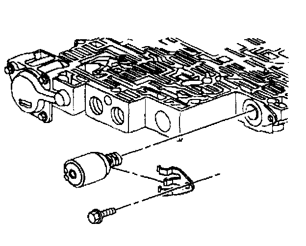 7. Remove the TCC PWM solenoid in order to access one of the TCC solenoid retaining bolts.