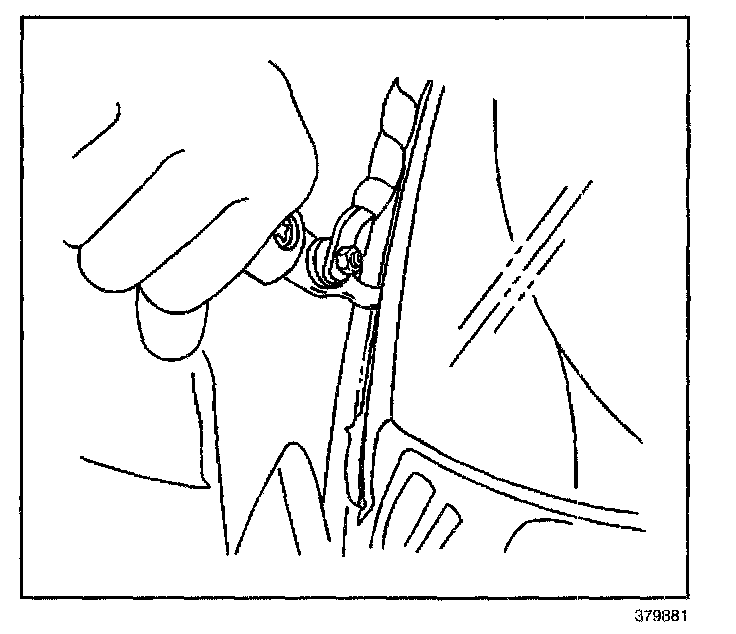 IMPORTANT: The window lower supports have molded locks with an urethane adhesive strip on the back side. Once the window lower stops have been removed, the stops must be replaced.