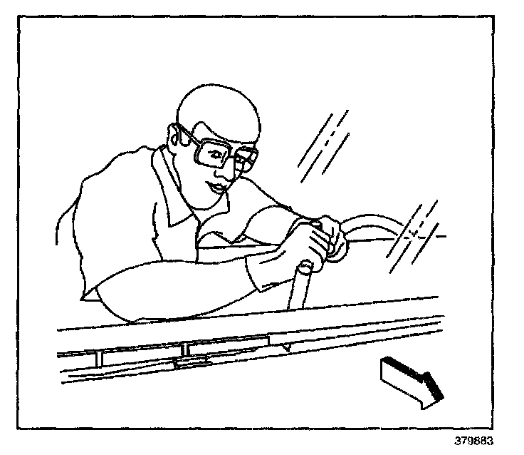 CAUTION: Refer to Glass and Sheet Metal Handling Caution in Service Precautions.