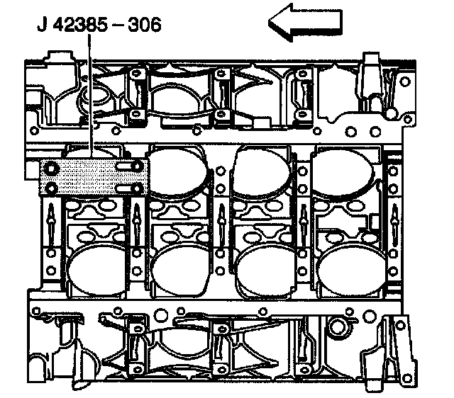 2. Install the fixture plate, bolt, and bushing, onto the engine block.