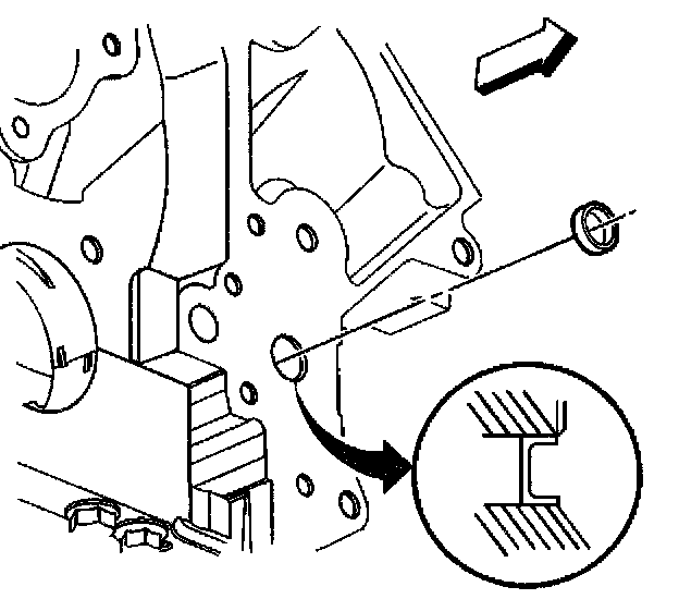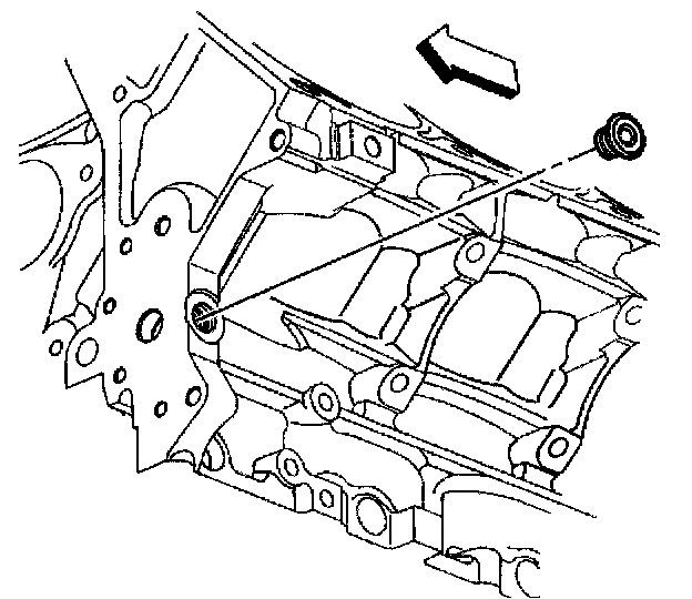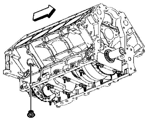 11. Inspect the engine block rear oil gallery plug and O-ring seal. If the O-ring seal on the plug is not cut or damaged, the rear oil gallery plug may be reused.