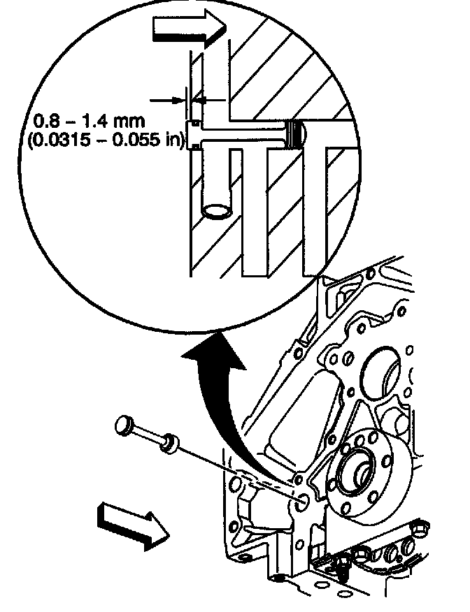 15. Install a NEW engine block front oil gallery plug, if required. Install the front oil gallery plug into the oil gallery bore 2.2-2.8 mm (0.0086-0.011 inch) below flush.
