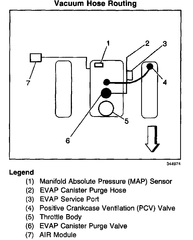 Emission Hose Routing Diagram (EVAP System Overview):