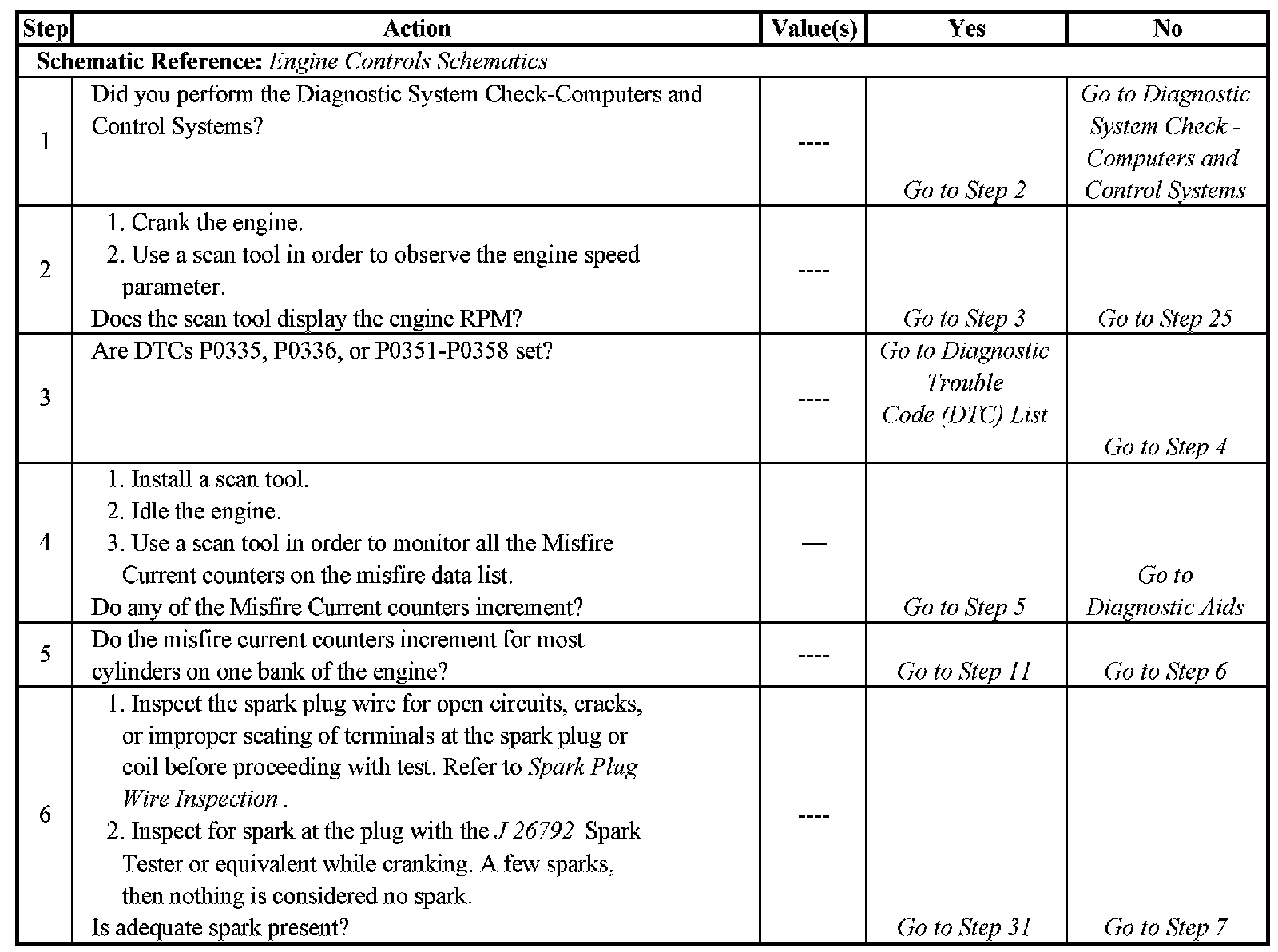 Electronic Ignition (EI) System Diagnosis - Steps 1-6: