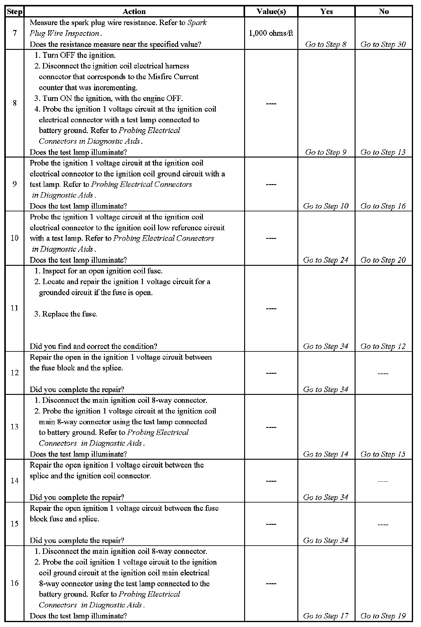 Electronic Ignition (EI) System Diagnosis - Steps 7-16: