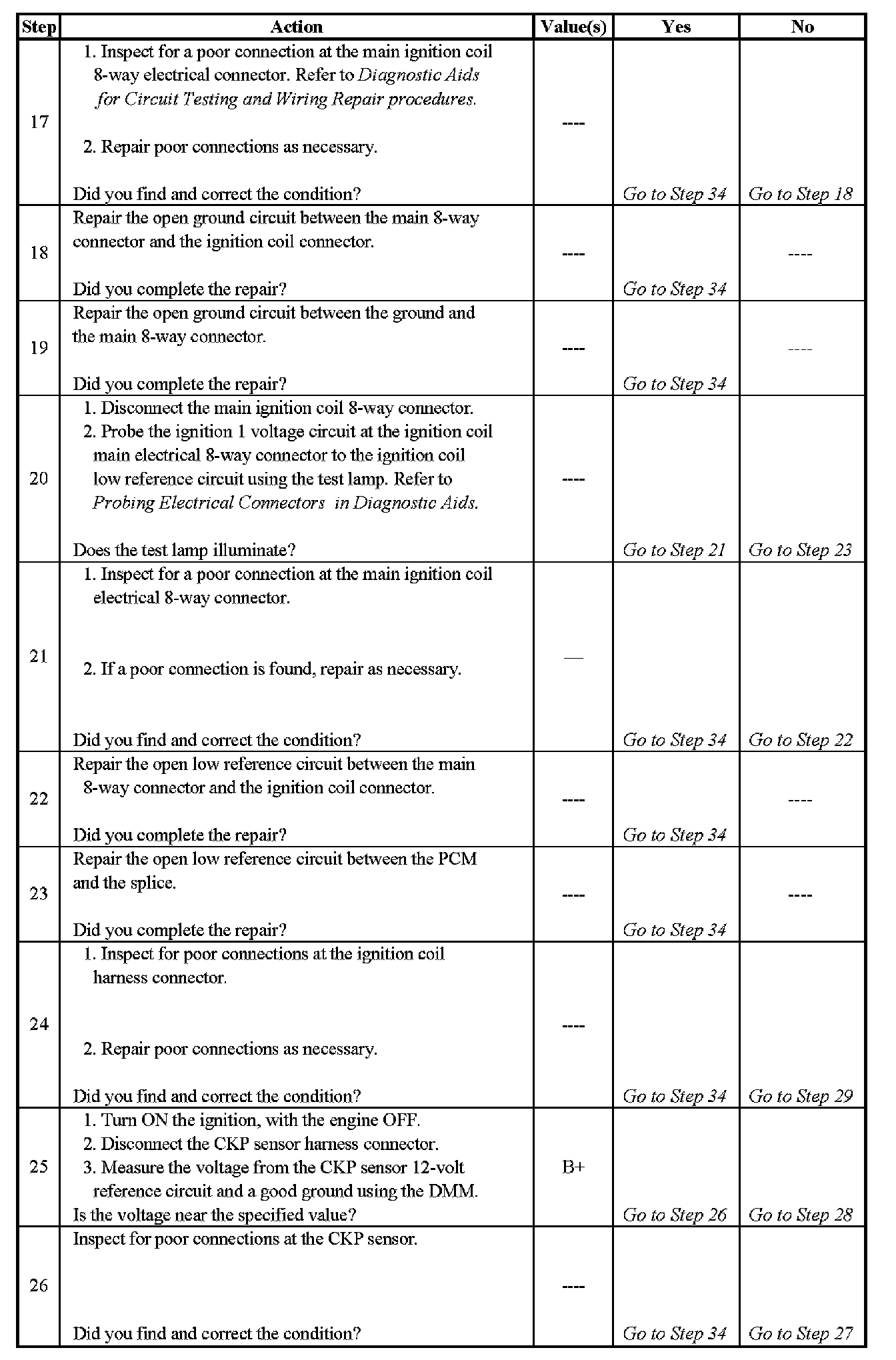 Electronic Ignition (EI) System Diagnosis - Steps 17-26: