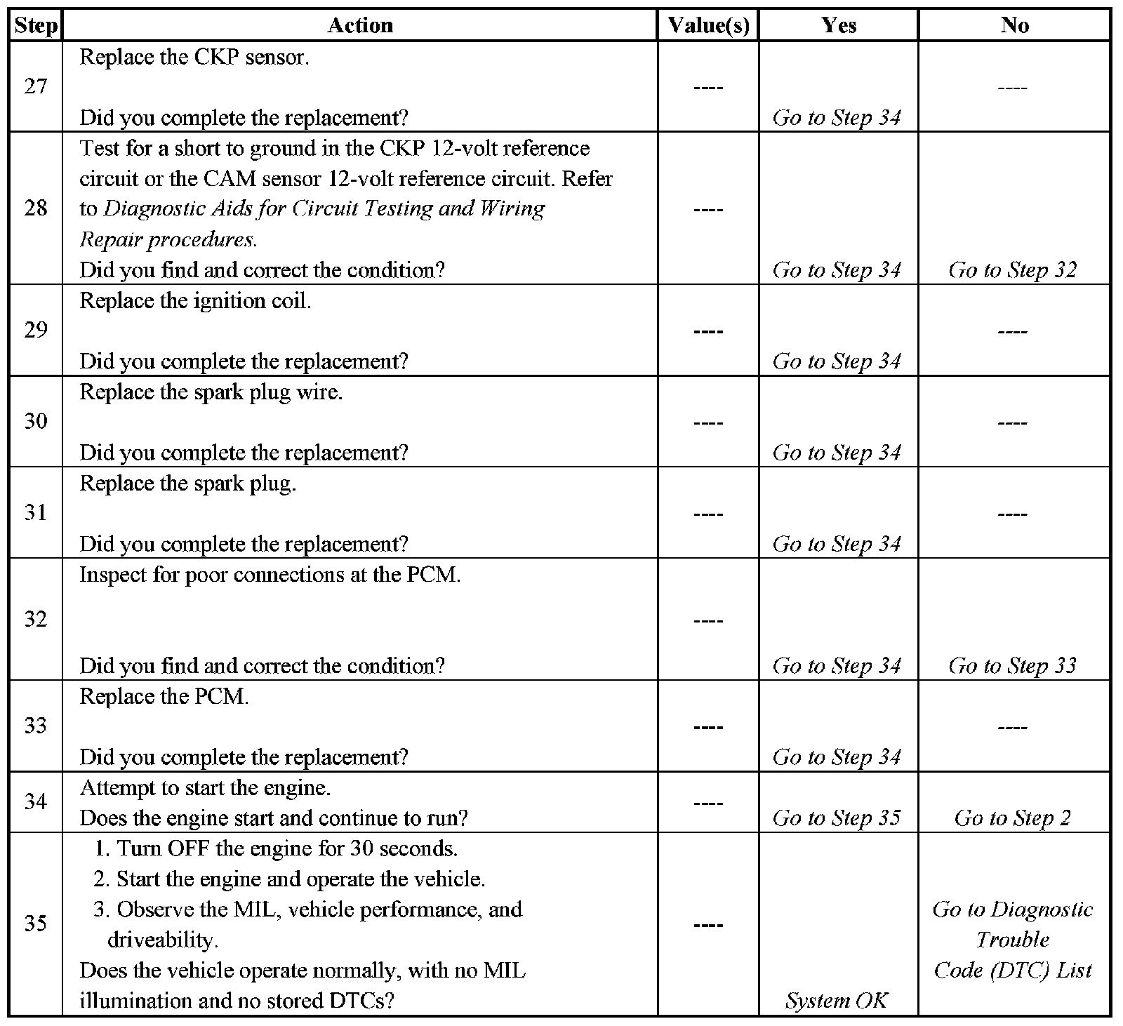 Electronic Ignition (EI) System Diagnosis - Steps 27-35: