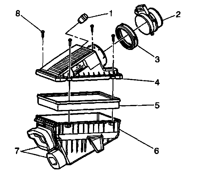 3. Tighten the air cleaner housing cover screws (8) until snug.