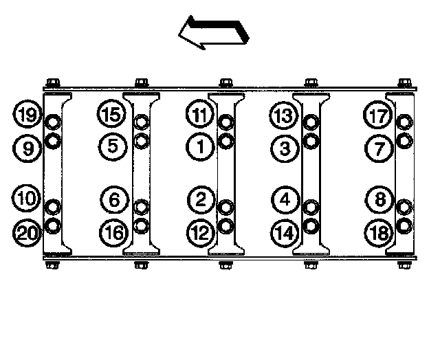 Crankshaft Bearing Cap Bolts (Outer Bolts-First Pass in Sequence) 20 Nm (15 ft. lbs.)
