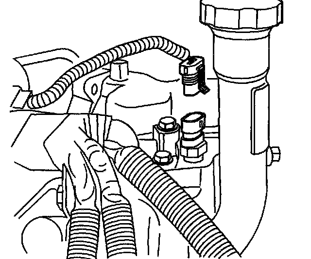 9. Remove the turbocharger coolant inlet hose from the turbocharger.