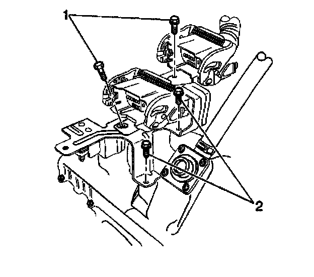 7. Remove the main engine harness connector hold down bolts (1, 2).
