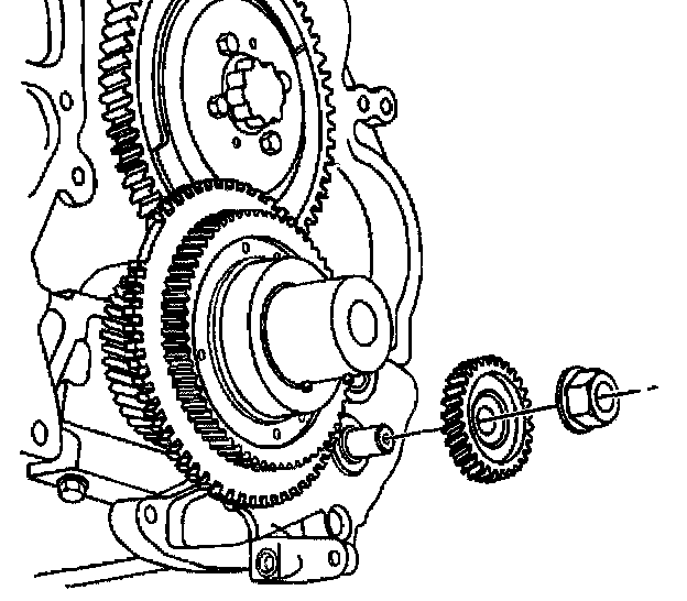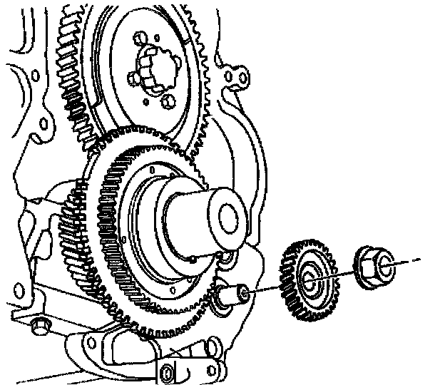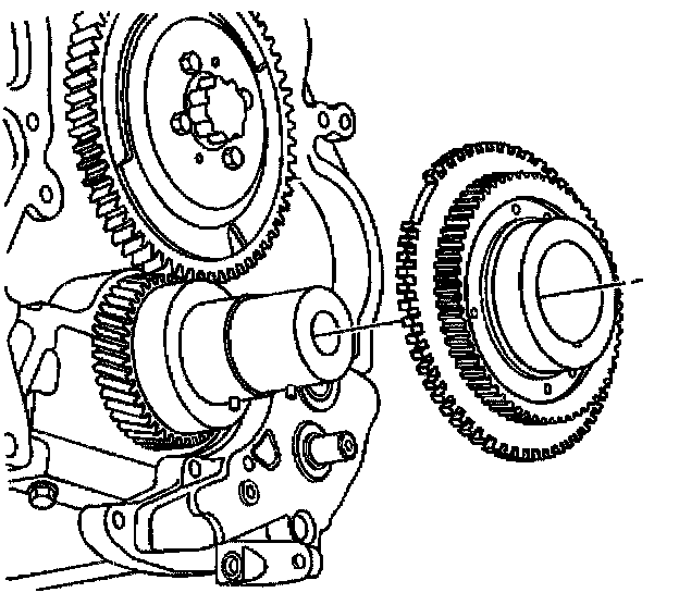4. Remove the oil pump drive gear and crankshaft sensor reluctor assembly. Do not damage the crankshaft reluctor teeth.