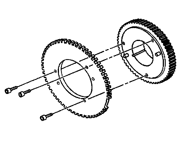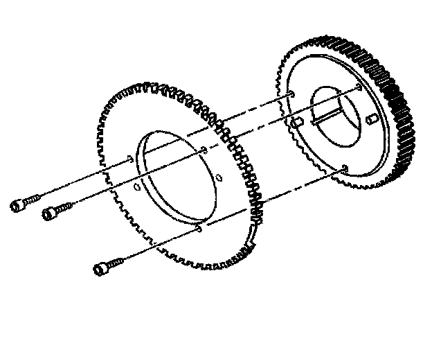 5. Remove the bolts retaining the crankshaft reluctor to oil pump drive gear.
