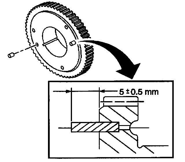1. Install the knock pins in the oil pump drive gear to a height of 4.5 - 5.5 mm (0.177 - 0.217 inch)