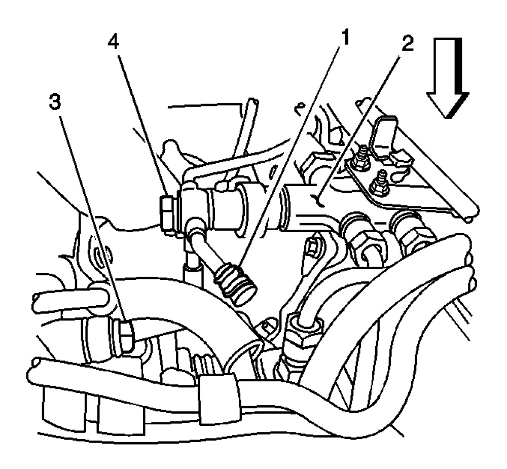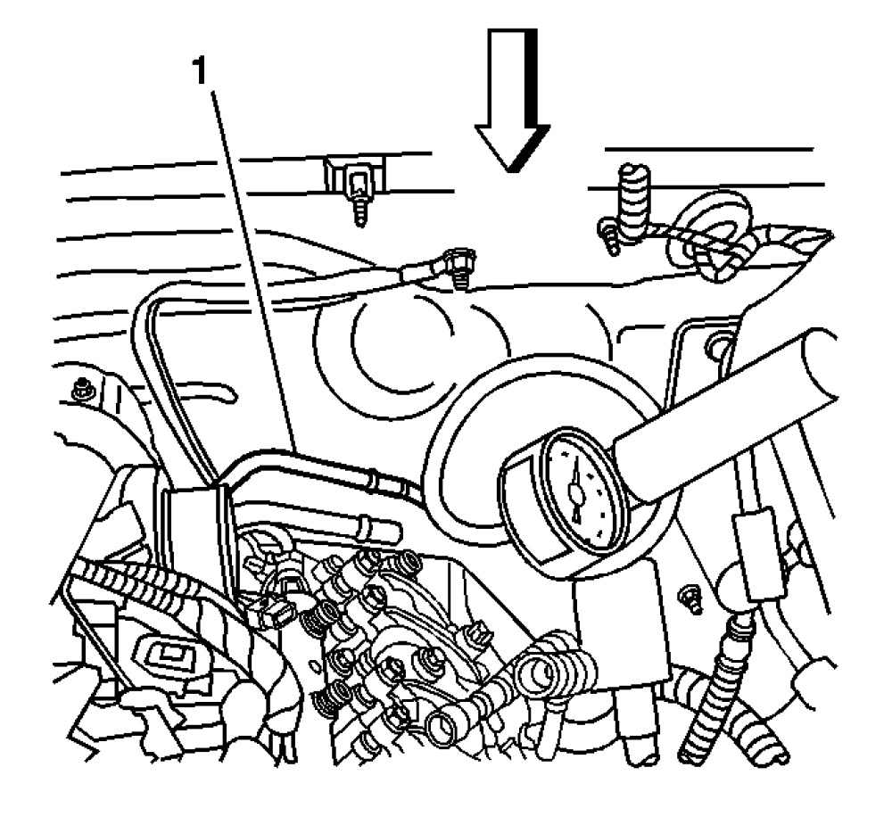9. Disconnect the fuel return line (1) from the right front cylinder head.