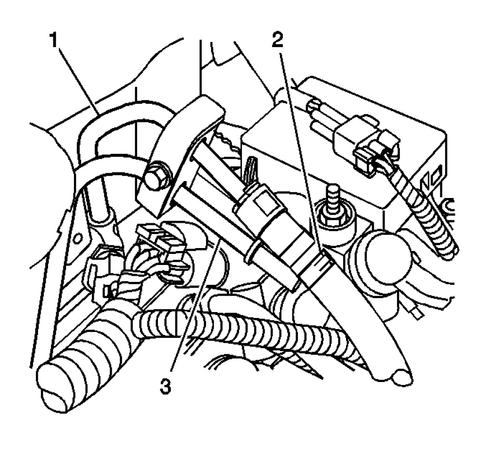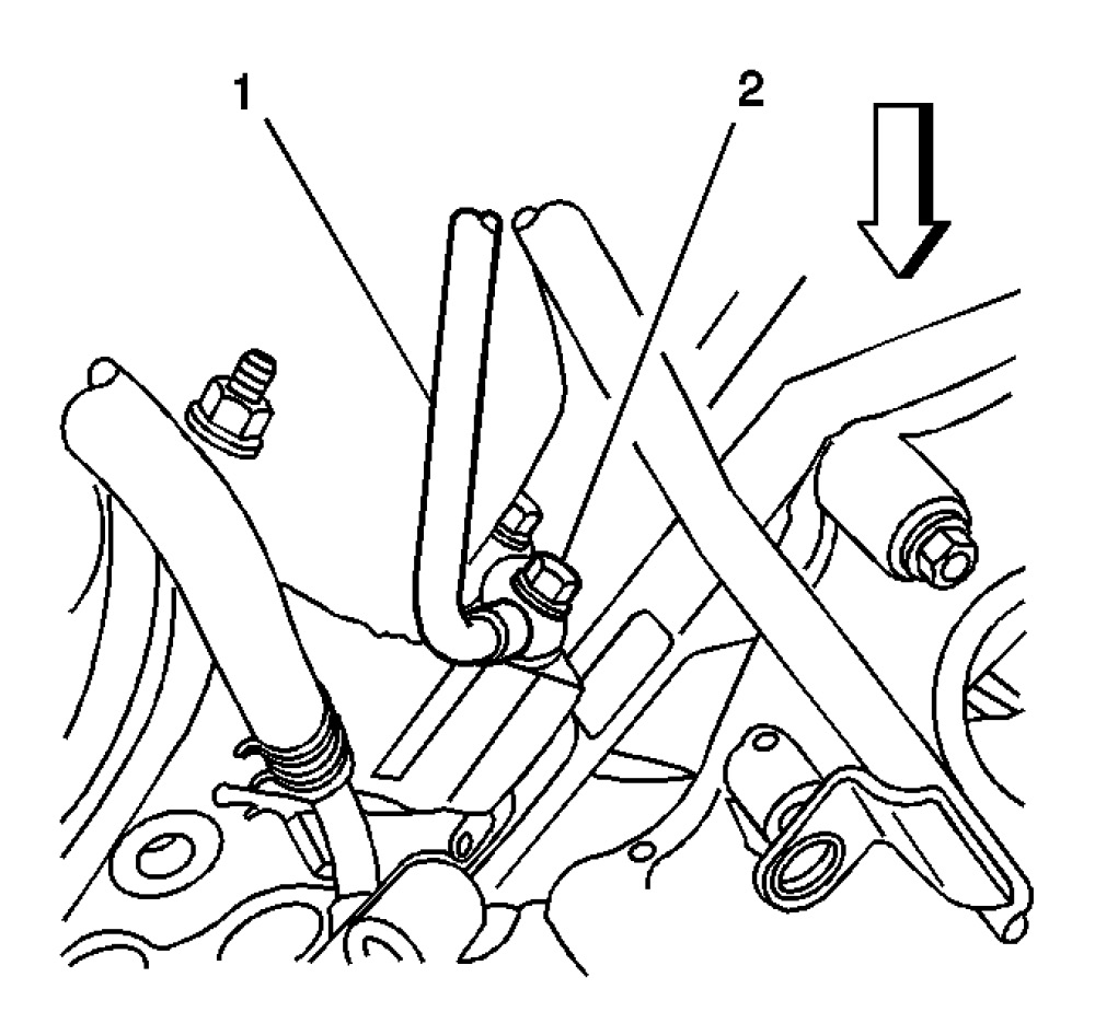 14. Install the J 42964-1 3/8 Fuel Pipe Shut-Off Valve (2) to the fuel return line (1).